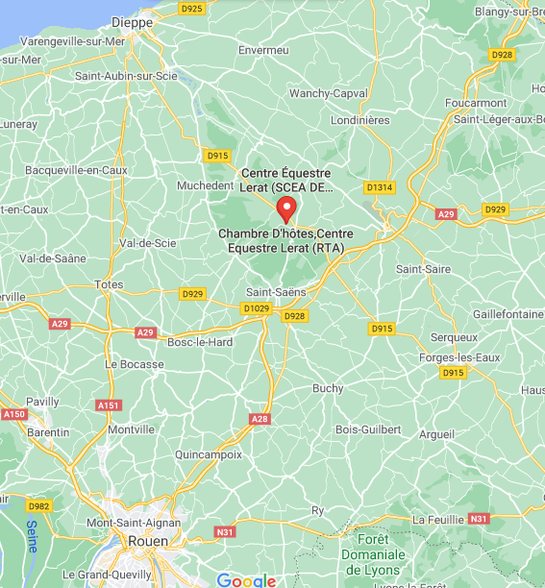 Situé à Pommeréval, en Seine-Maritime, au cœur du Pays de Bray, à quelques kilomètres de Saint-Saëns, le centre équestre animé par la famille Lerat vous offre, sur un vaste domaine bordé par la forêt domaniale d'Eawy, une multitude d'activités et d'animations dédiées aux cavaliers de tous âges et de tous niveaux et de services pour les chevaux.